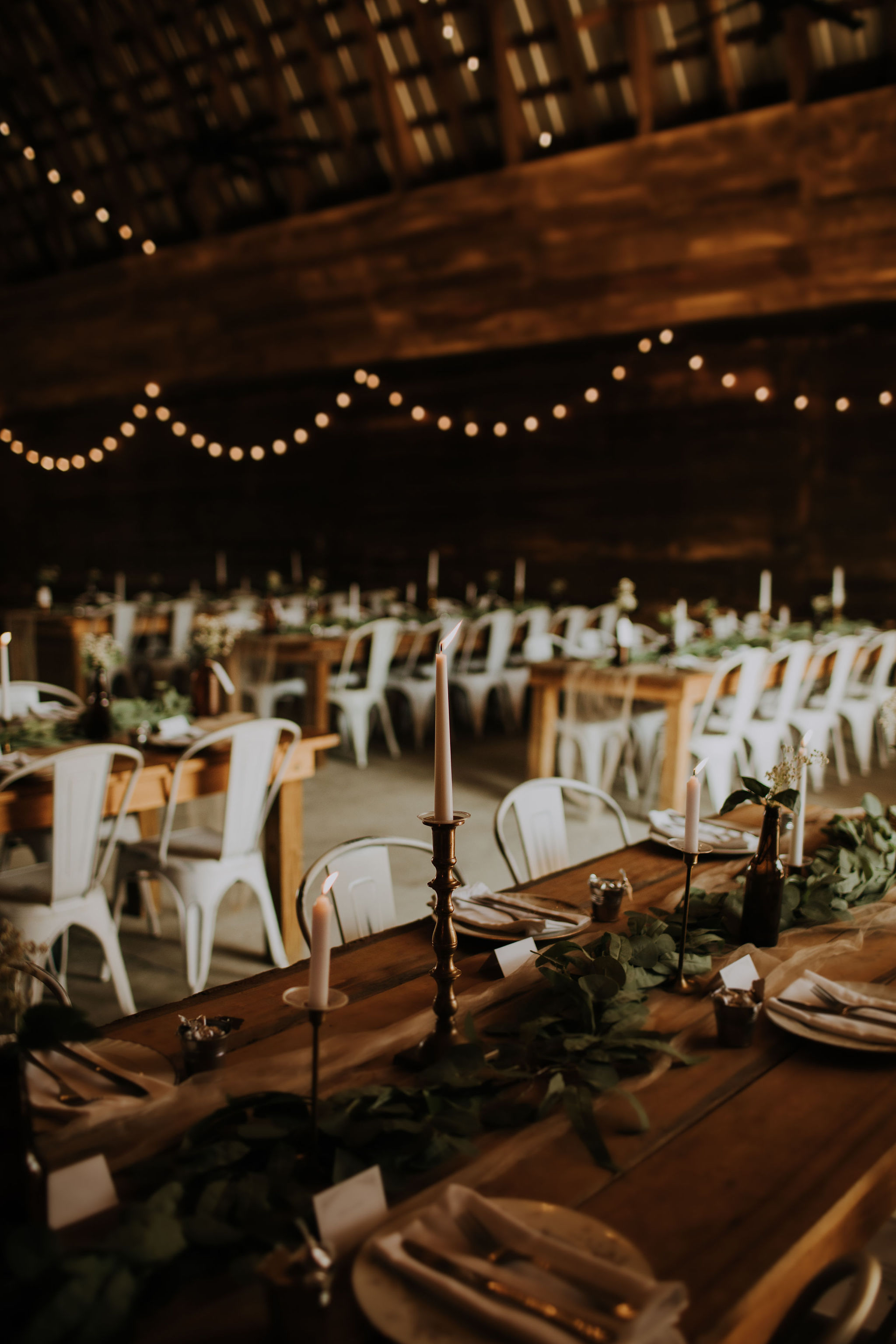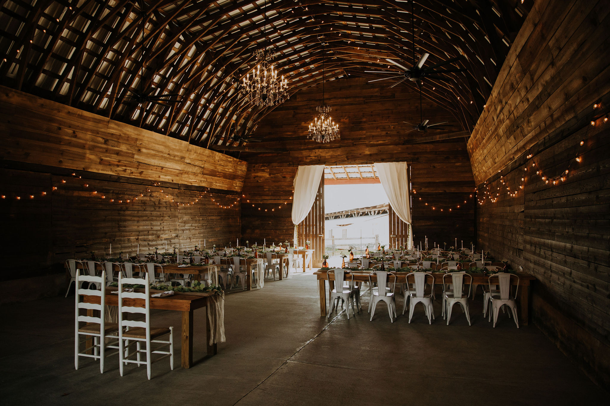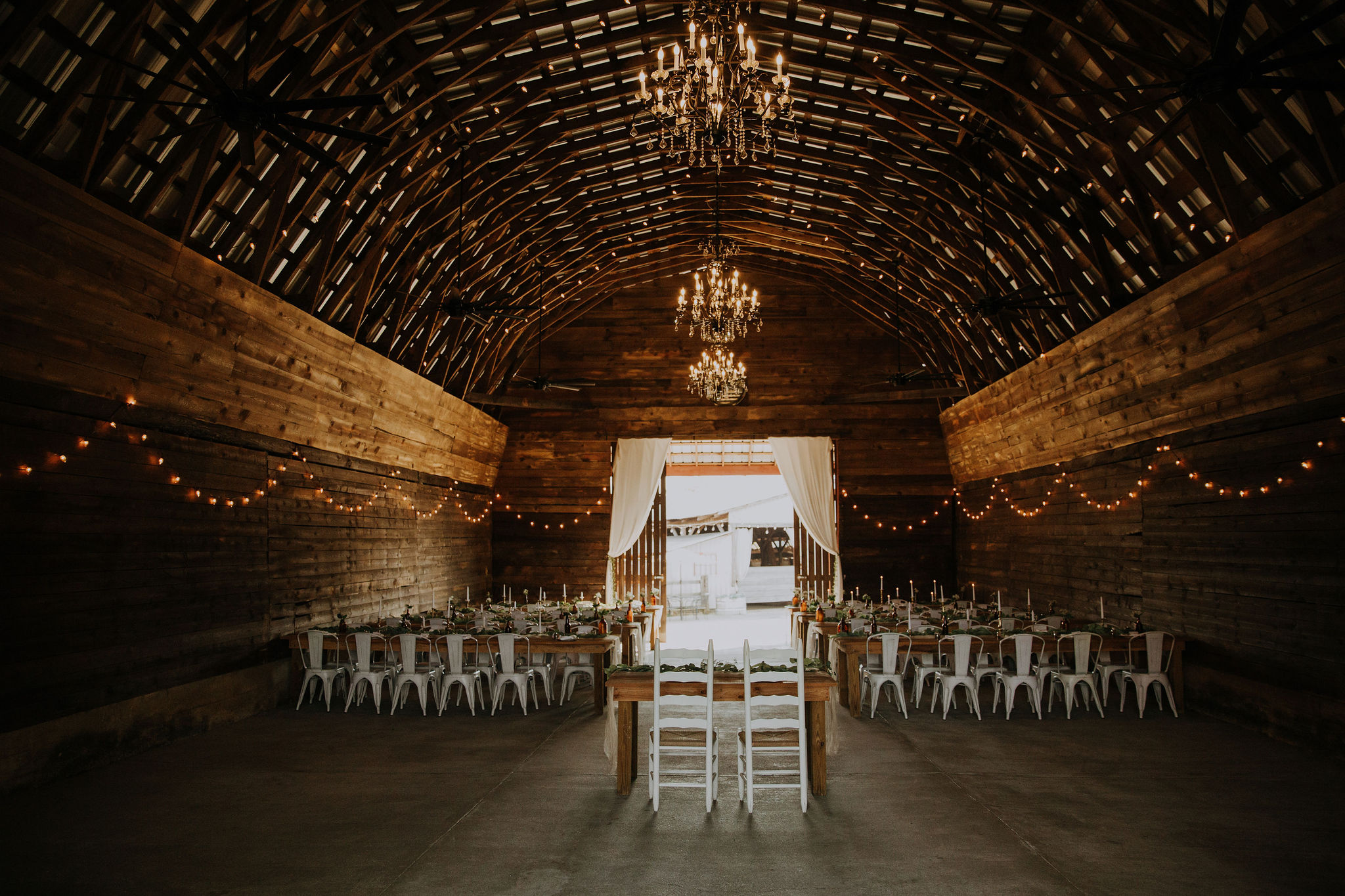Elegant Barn Reception with Vaulted Ceillings & Beautiful Chandeliers