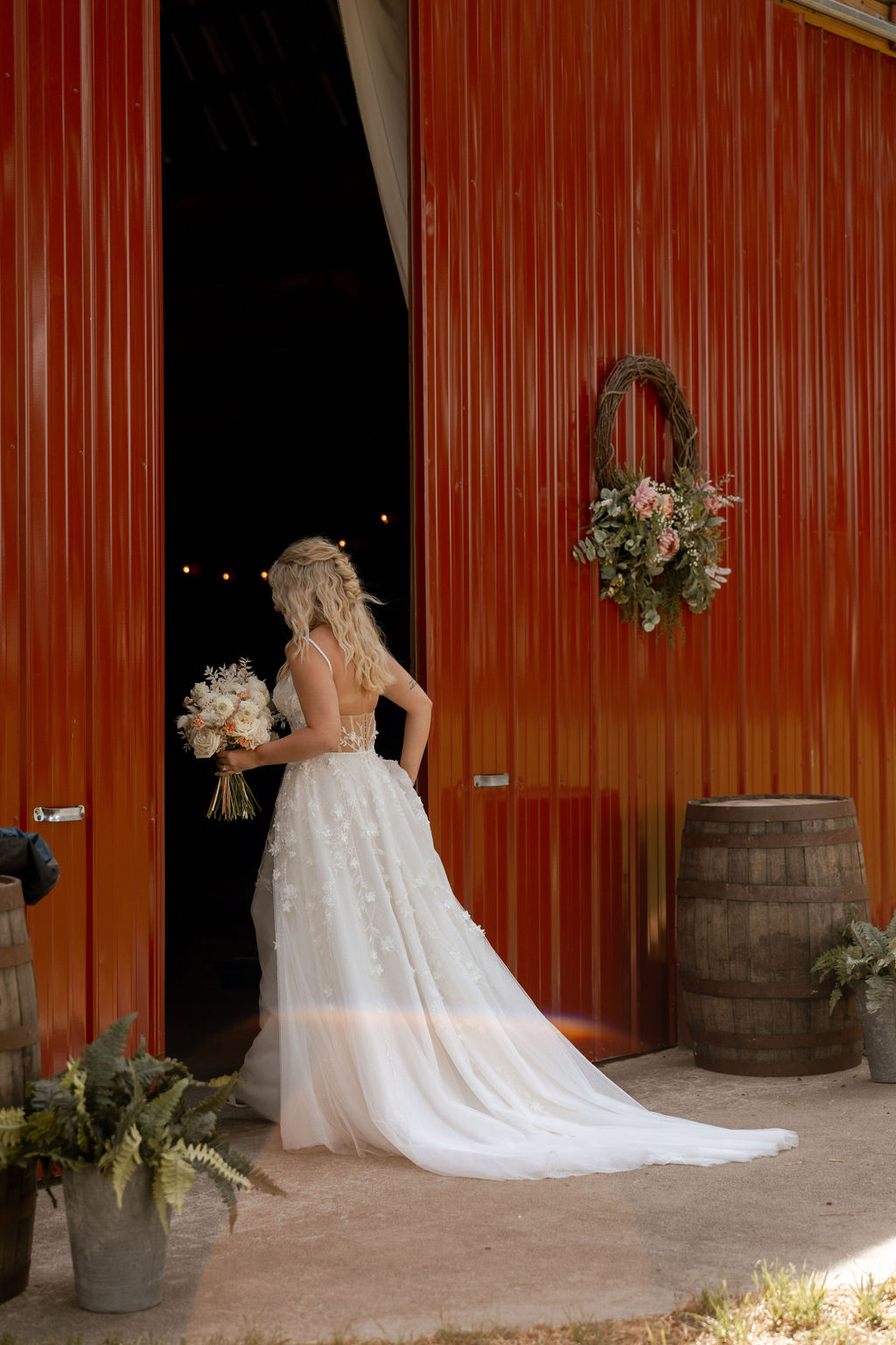 The Groom’s Suite provides a relaxed, rustic atmosphere that reflects the character of the barn itself. With comfortable seating and room to gather, it offers an easygoing place to get dressed, unwind, and enjoy the anticipation before the celebration begins. With exclusive access to the property, couples can move through every moment at their own pace.
